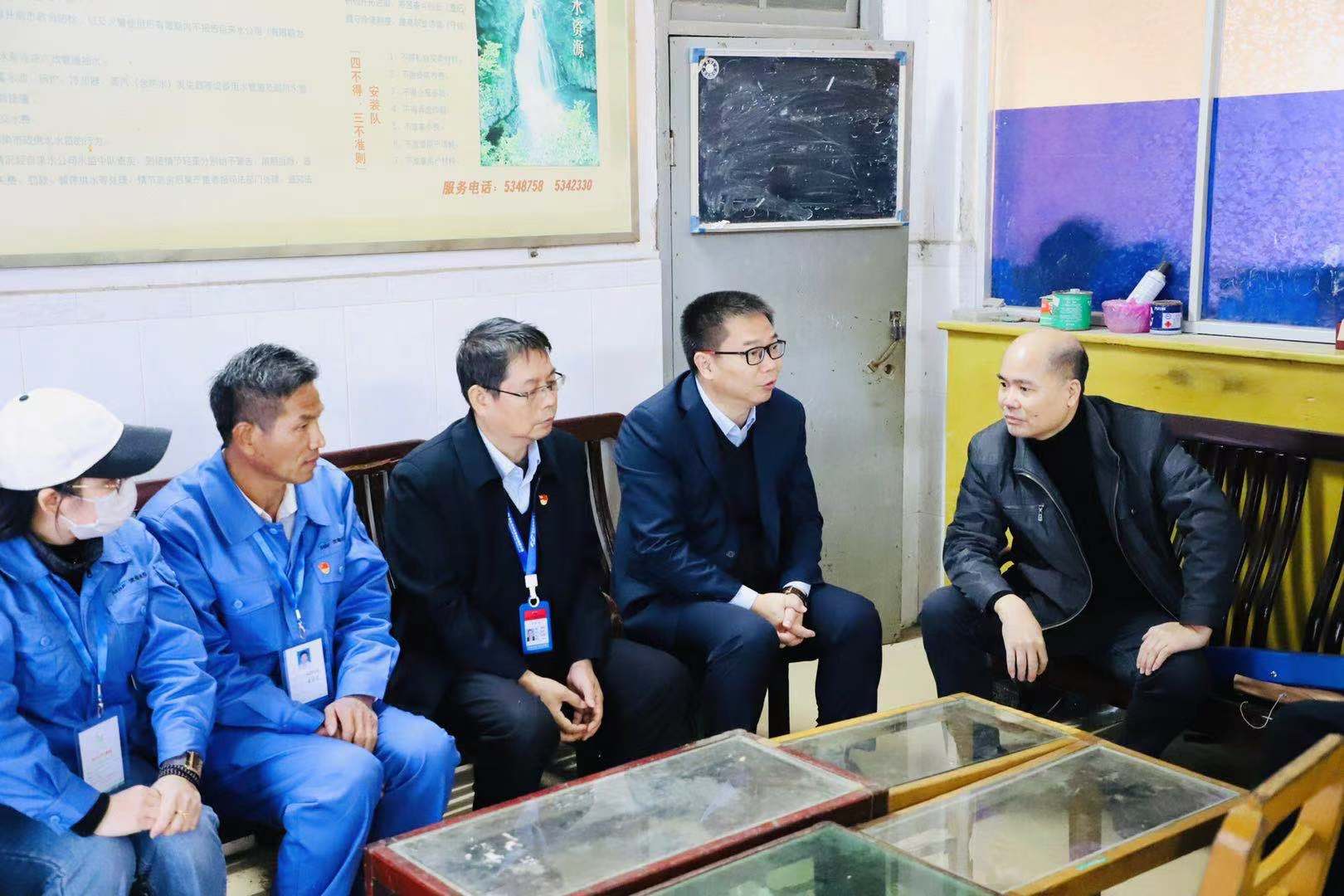 移交儀式結(jié)束后,黃遠維一行前往位于電城鎮(zhèn)中心的電城水廠供水辦事處,了解電城居民日常繳納水費、報裝維修等具體工作情況。