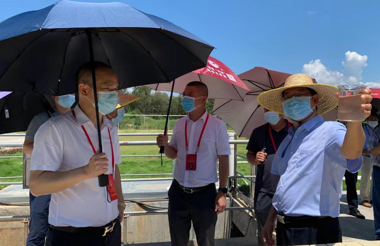 代表團一行實地察看了博賀水質凈化廠廠區內污水處理設施、污水處理工藝流程,詳細了解水質凈化廠配套項目情況。