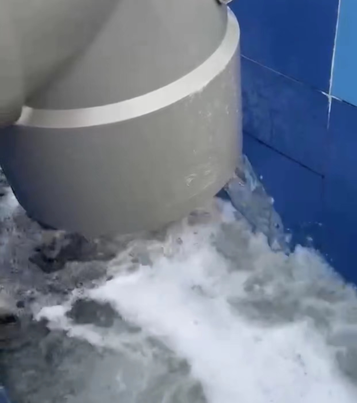 “中間調節池開始進水!罐體試進水成功!出水主管通水啦!”