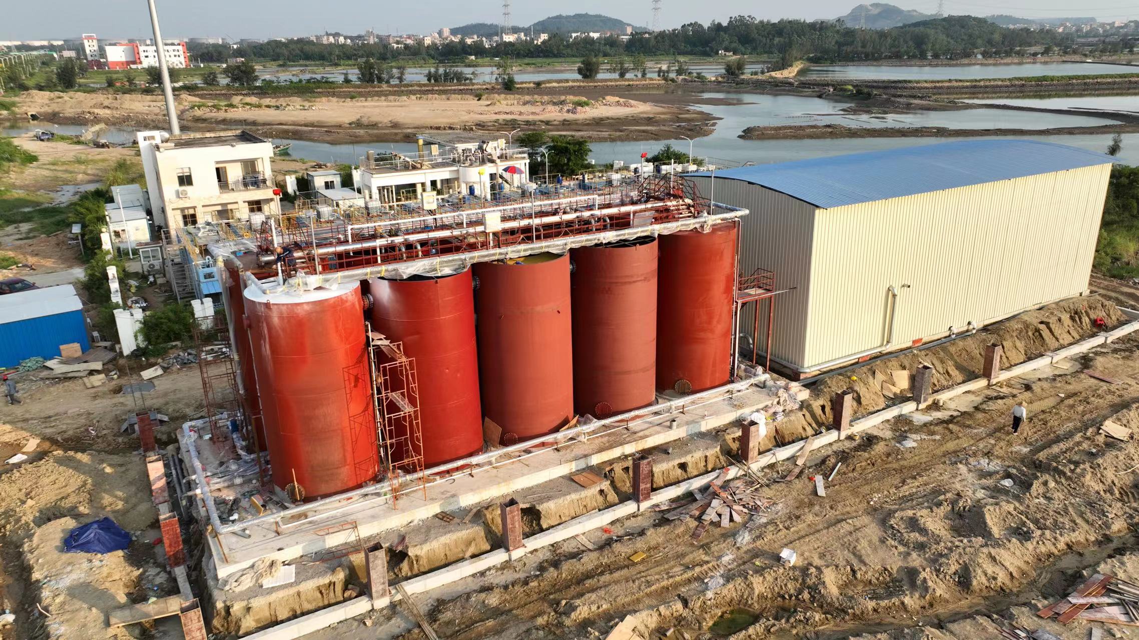 經過一個月的埋頭苦干,克服了地基基礎薄弱、各類工藝管線設備錯綜復雜、“0804”電白區疫情突發事件、第9號臺風“馬鞍”過境等諸多難題,保證了節點工期,并于8月30日晚22時49分實現罐體試進水,8月31日下午18時22分實現生產調試通水,順利完成9月1日前全面完成生產通水的目標。